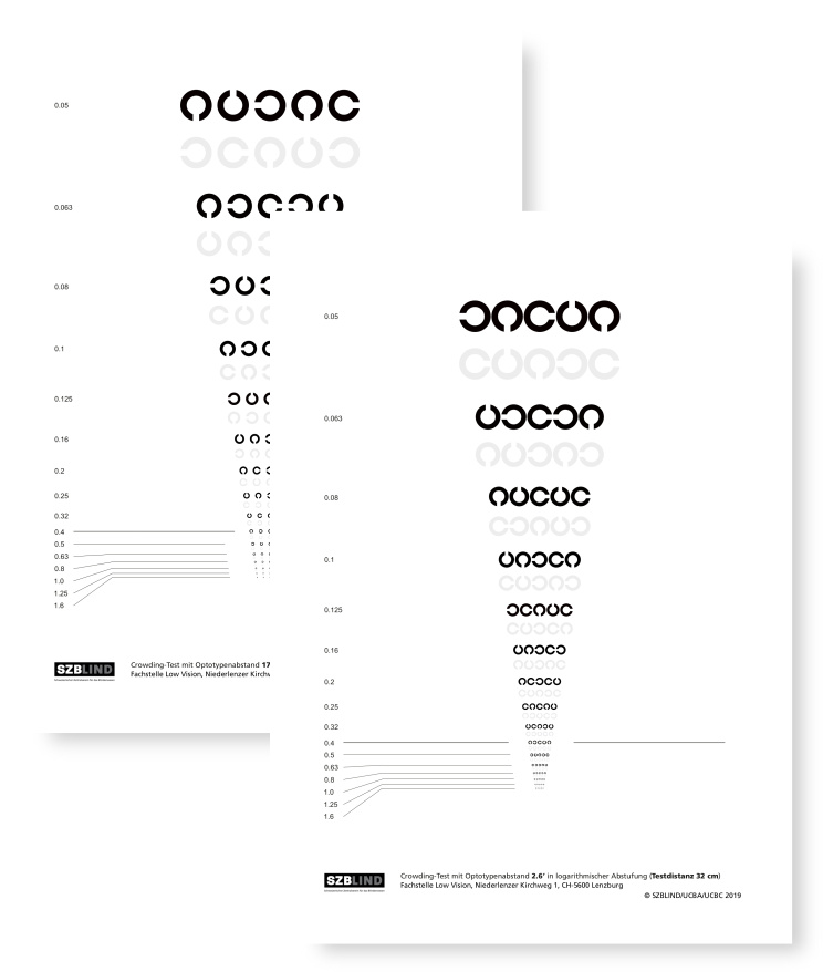 Test de vision de près Crowding 17.2 et 2.6 minutes d'arc