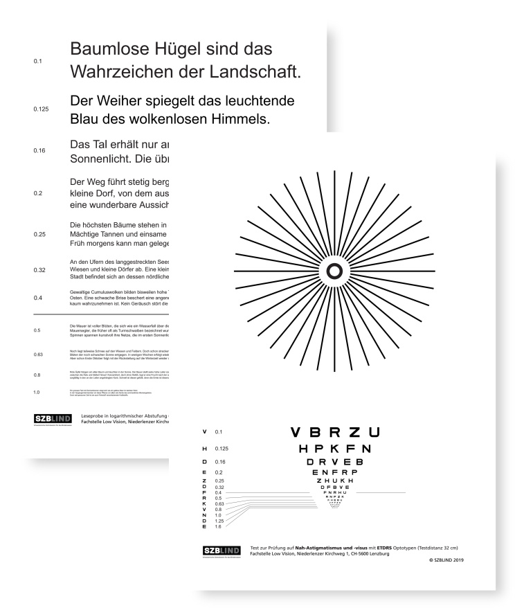 Test de vision de près astigmatisme Verso : texte en allemand
