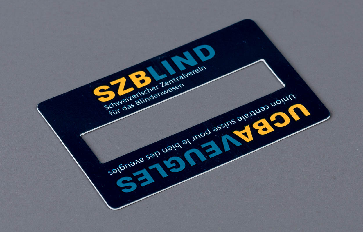 Abmessungen: 8.7 x 5.5 cm (Kreditkartengrösse), Platz für Unterschrift: 7.3 x 1.5 cm