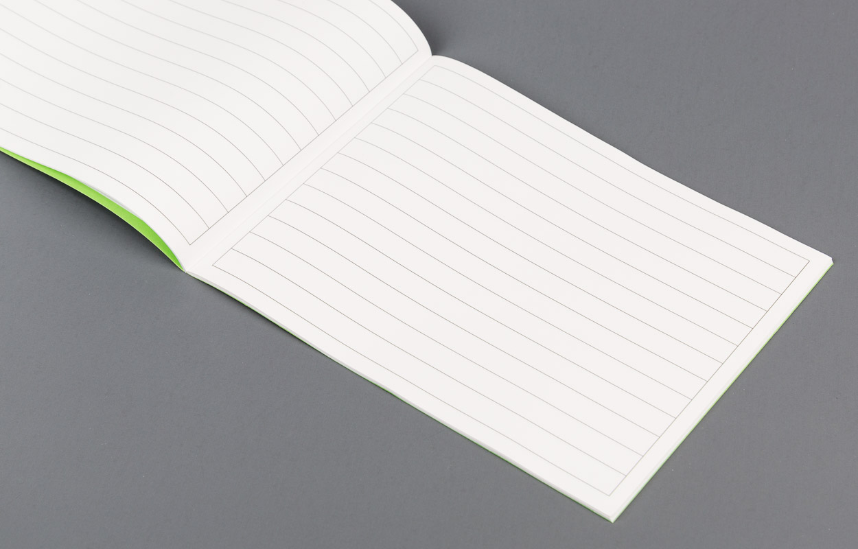 Farbe: grüner Einband, weisse Seiten mit grauen Linien